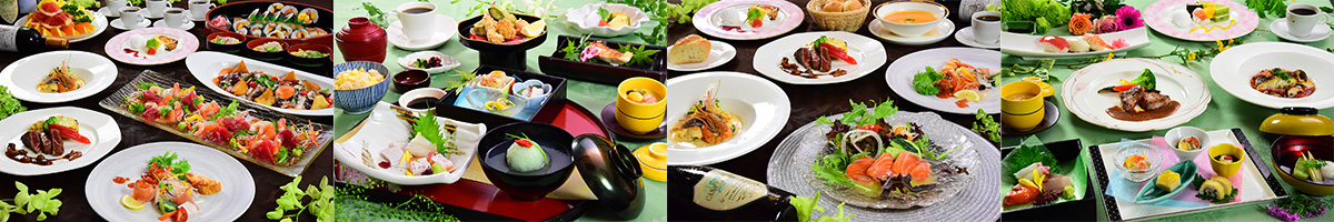 お料理がビュッフェ、会席、フレンチ、和洋折衷の4種から選べるのが魅力。